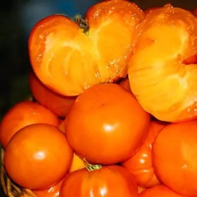 | Статус сорта: возможность самостоятельной заготовки семян. | Низкая лежкость и транспортабельность, характерная для мясистых салатных томатов. | Яркий апельсиново-рыжий цвет, указывающий на высокое содержание каротиноидов. |