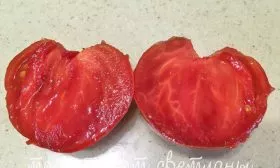 Мякоть очень мясистая, сахаристая на изломе, с высокой сочностью. Количество семенных камер превышает шесть, при этом самих семян мало. Такая структура, характерная для биф-томатов, обеспечивает отличные вкусовые качества и делает плод идеальным для нарезки.