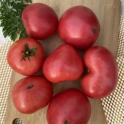 Цвет зрелого плода — насыщенный розово-малиновый, иногда с розово-красным подтоном. Важной особенностью является равномерность окрашивания: у полностью созревшего томата у плодоножки отсутствует зеленое или желтое пятно, что говорит о полноценном накоплении сахаров и пигментов.