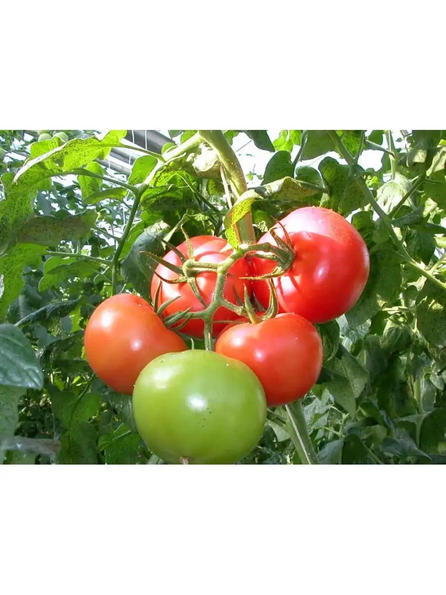 Плоды — главная гордость сорта. Они имеют классическую плоскоокруглую, слегка ребристую форму, особенно у плодоножки. В стадии полной зрелости томаты приобретают насыщенный красный цвет без зеленого пятна у плодоножки.