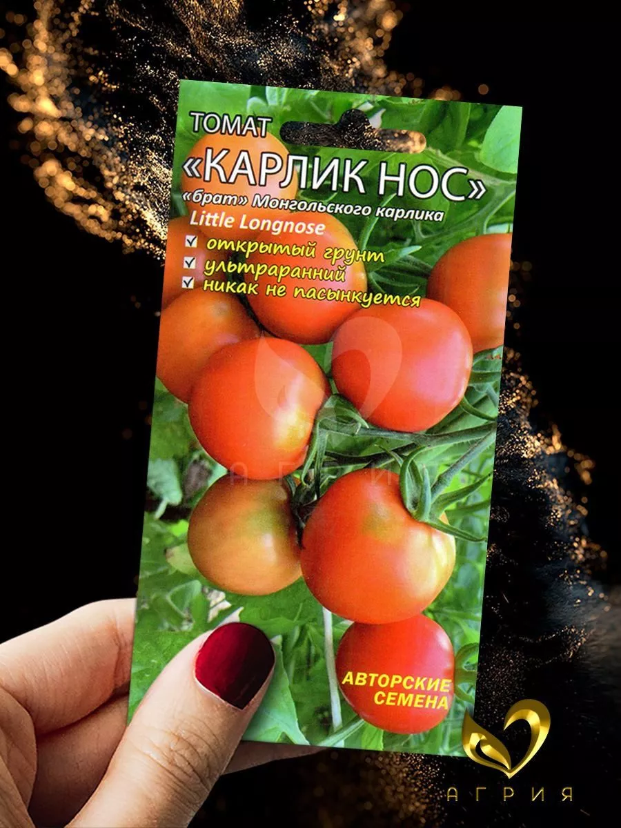 Карлик Нос — сорт, а не гибрид, поэтому с него можно самостоятельно заготавливать семена, которые полностью сохранят сортовые признаки в следующем поколении. Для этого выбирают самые типичные, выровненные и здоровые плоды с самых первых и сильных кистей.