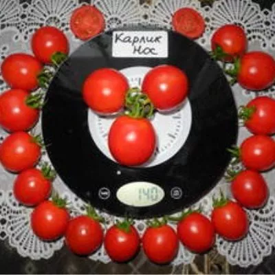 Плодоношение у Карлика Носа отличается дружностью, основная масса урожая созревает сконцентрированно, в течение 2-3 недель. Учитывая компактный размер куста и его невысокую общую нагрузку плодами, рекомендуется собирать томаты регулярно, по мере их окрашивания.