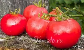 Плоды – визитная карточка этого гибрида. Они имеют красивую плоскоокруглую форму, часто со слабо выраженной ребристостью у плодоножки. В стадии полной биологической зрелости томаты приобретают насыщенный розово-малиновый цвет без зеленого пятна у плодоножки, что говорит о равномерном созревании.