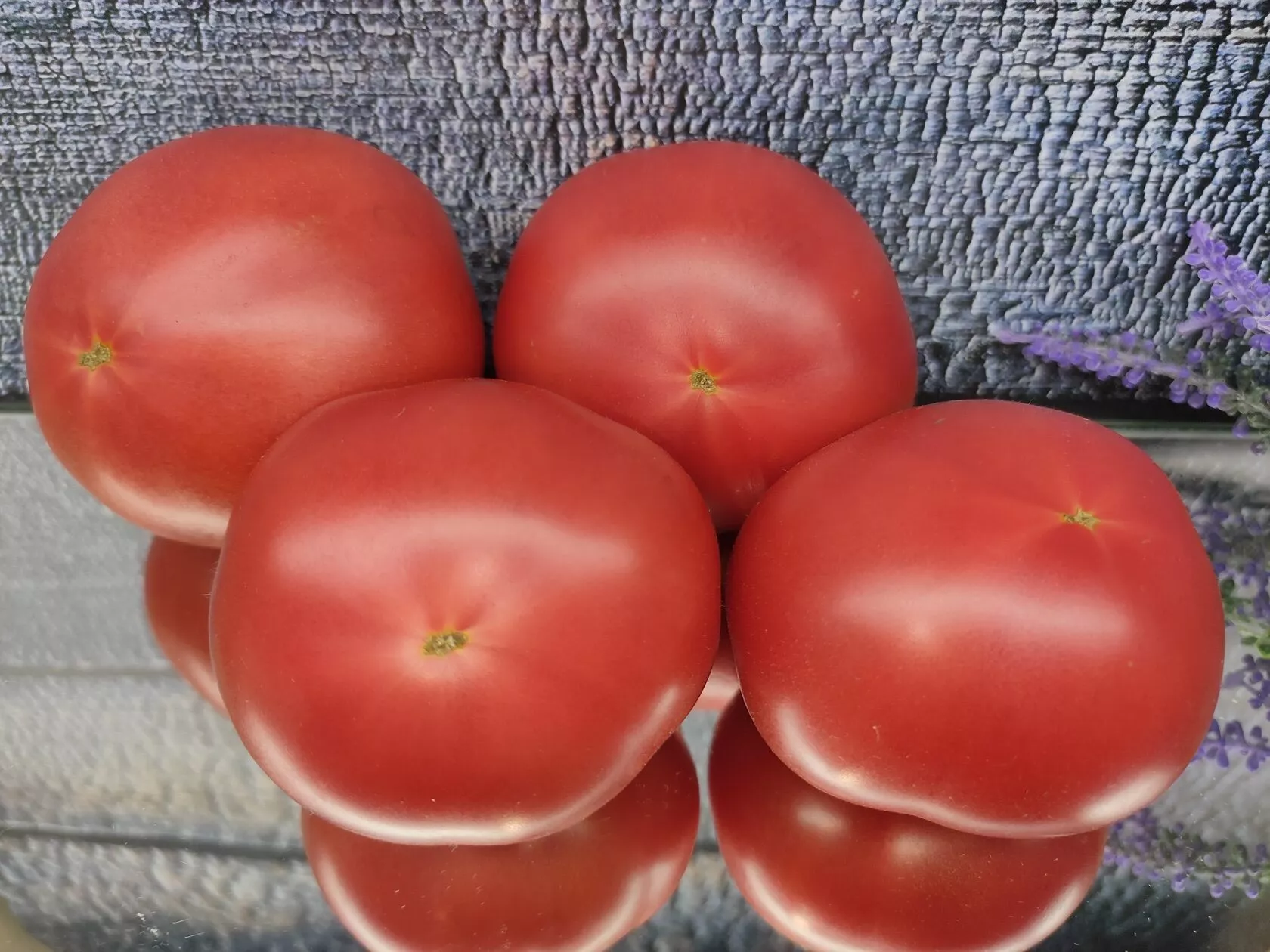 На стадии технической спелости у основания, в области плодоножки, четко видно светло-зеленое пятно. По мере дозревания цвет выравнивается, и зрелый томат приобретает равномерный, глубокий красный оттенок без пятен и зеленых плечиков.