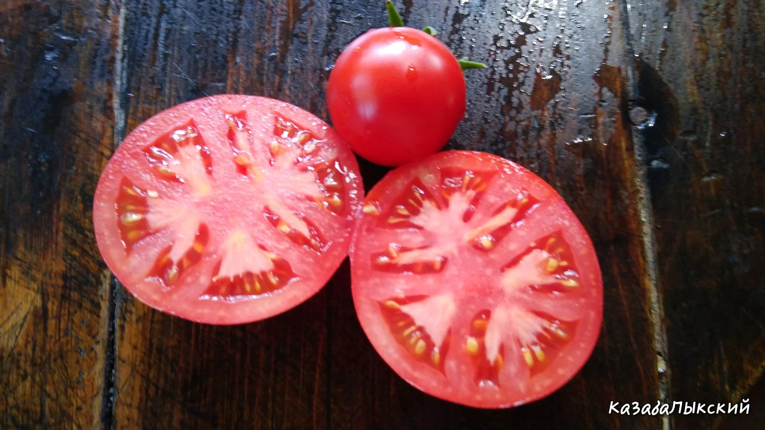 В стадии полной биологической зрелости плоды приобретают равномерный красный цвет без зеленого пятна у плодоножки. Гладкая и плотная кожица, характерная для таких плодов, обеспечивает хорошую сохранность и транспортабельность, а также минимизирует растрескивание, что особенно важно при нерегулярном поливе.