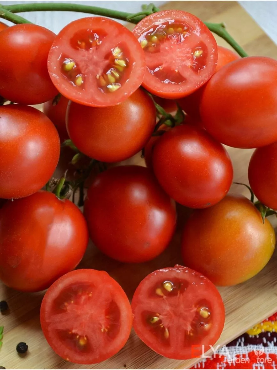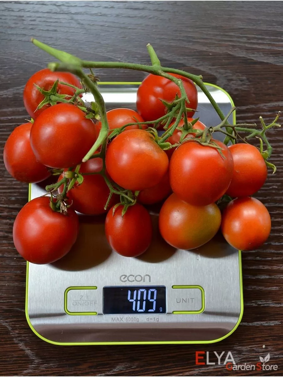 Плоды соответствуют распространенному формату для ранних томатов: их масса находится в диапазоне 30-50 граммов. Такие некрупные помидоры часто называют «коктейльными». Их форма классифицируется как плоскоокруглая — это традиционная, слегка приплюснутая сверху и снизу форма, которую многие считают эталонной для томата.