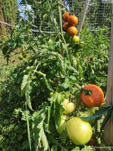 - Подвязка стебля к прочной опоре (шпалере, колу) обязательна с самого начала роста. Отдельного внимания требуют тяжелые кисти с плодами массой 290-320 граммов. Их также необходимо подвязывать или подвешивать на крючки, чтобы избежать отламывания от стебля под собственной тяжестью.