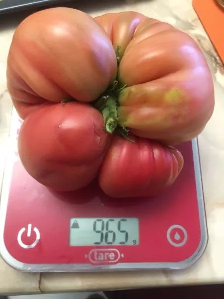 Главный параметр — масса. Средний вес плода составляет около 500-700 граммов, но регулярно достигает заявленных 900 граммов. При особо благоприятных условиях и нормировании завязей не редкость экземпляры по 1200-1500 граммов.