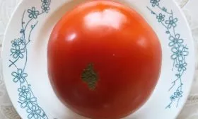 Помидоры этого сорта отличаются классической и выровненной округлой формой, что является одним из признаков их высокой товарности. В биологической спелости они набирают равномерный, насыщенный красный цвет. Характерно, что у плодоножки отсутствует зеленое пятно, что свидетельствует о полноценном созревании даже в основании.