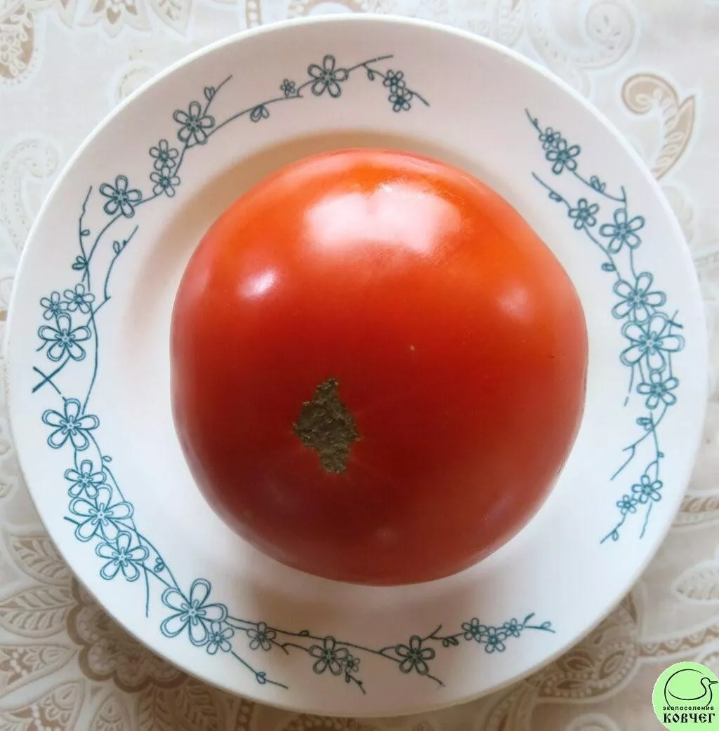 Помидоры этого сорта отличаются классической и выровненной округлой формой, что является одним из признаков их высокой товарности. В биологической спелости они набирают равномерный, насыщенный красный цвет. Характерно, что у плодоножки отсутствует зеленое пятно, что свидетельствует о полноценном созревании даже в основании.