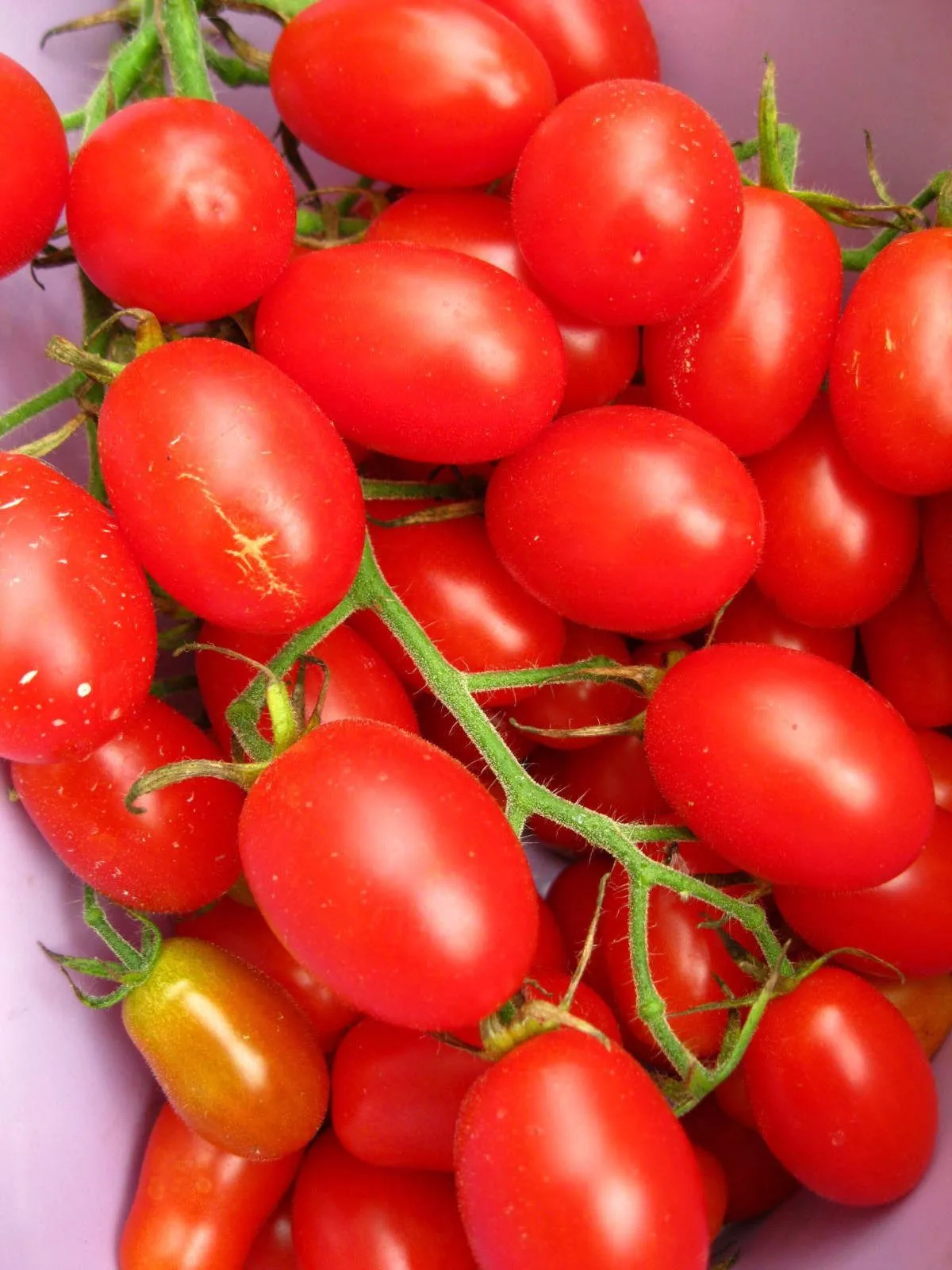 Цилиндрическая, удлиненная форма — ключевая особенность, значительно упрощающая процесс сбора. Такие плоды очень удобно обхватывать пальцами, они легко и чисто отделяются от плодоножки простым поворотом вокруг оси. Это минимизирует риск случайного обрыва или повреждения соседних томатов в кисти, что особенно важно при регулярном частом сборе.