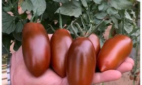 Этот сорт легко узнать по характерному облику куста и плодов. Его детерминантный тип роста означает, что растение прекращает вершкование (рост в высоту) после формирования определенного количества цветочных кистей. В сочетании со штамбовой формой это дает компактный, крепкий куст с утолщенным центральным стеблем, который самостоятельно хорошо держит форму.