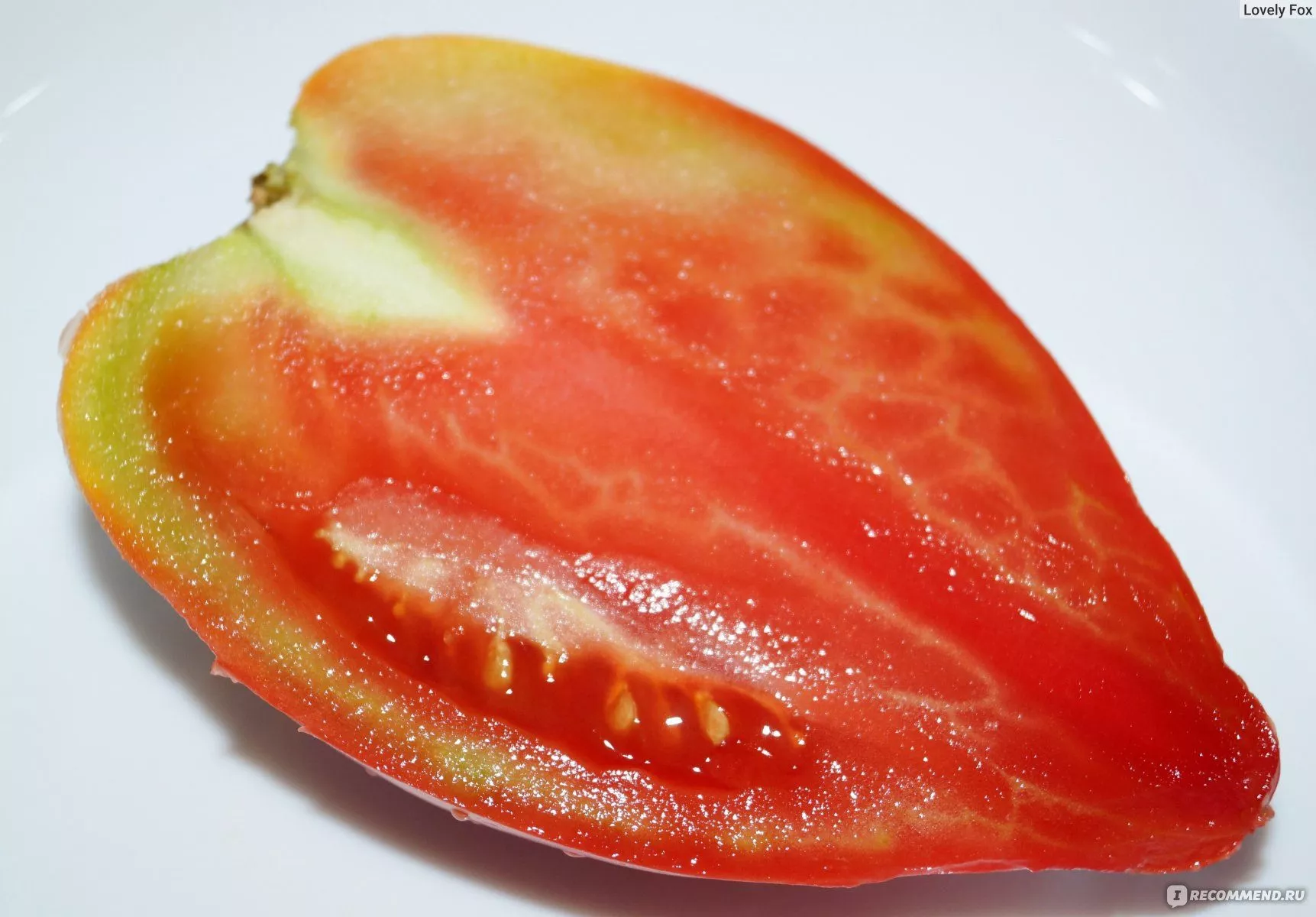 Мякоть у зрелых плодов плотная, но нежная, сахаристая на изломе. Внутри расположено несколько семенных камер, однако их объем относительно невелик, а сами семян немного. Основной объем занимает именно мясистая мякоть, что определяет высокие вкусовые качества и делает сорт идеальным для переработки на сок или пасту.