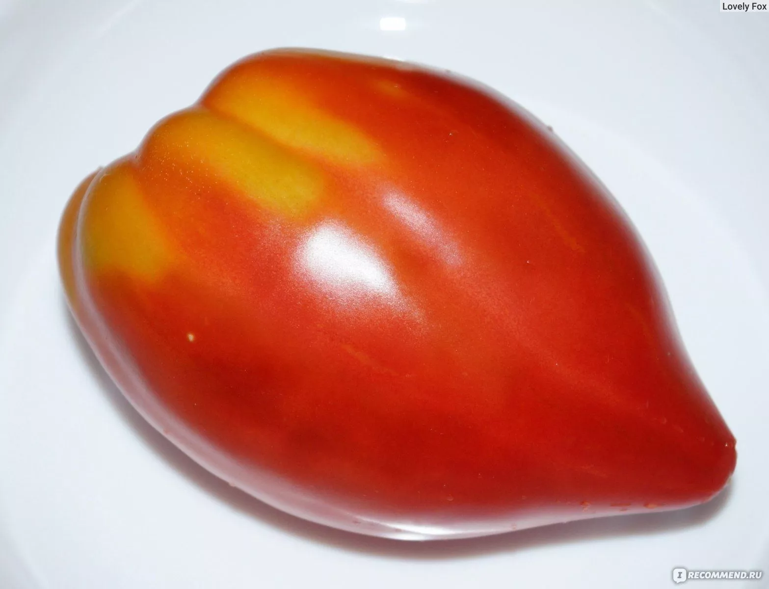 Форма томатов этого сорта является его главной отличительной чертой. Она не просто сердцевидная, а имеет ярко выраженный, часто изящно загнутый «носик» на вершине, что в сочетании с общей конфигурацией делает плод удивительно похожим на крупную ягоду садовой земляники. Эта особенность стабильно проявляется при соблюдении стандартной агротехники.