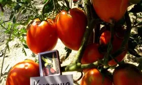 Выращиваю второй год в теплице под Питером. Кусты мощные, под два метра, вел в два стебля. Урожайность радует — с каждого собрал по 15-18 красивых, ровных «цилиндриков». Вкус отличный, сладкий, мякоть плотная. Минус один — требует постоянного пасынкования и крепкой опоры, иначе ляжет от тяжести кистей.