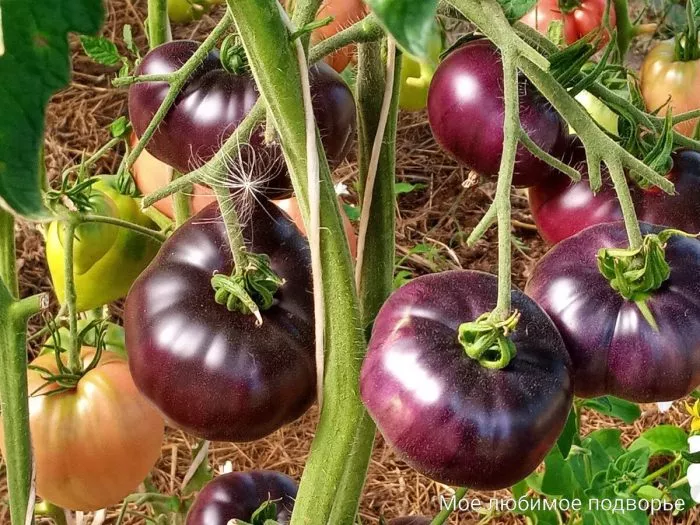 Как и все индетерминантные сорта, растение обладает неограниченным ростом основного стебля. В условиях теплицы его высота регулярно достигает заявленных 180-200 сантиметров. Плоды завязываются в простых или промежуточных соцветиях, по 3-5 штук в каждой кисти. Такое количество для крупноплодной формы является оптимальным, чтобы все завязи получили достаточное питание и выросли до характерных размеров.