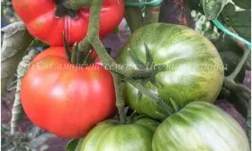 Окрас в фазе полной биологической спелости равномерный, розово-красный, без зеленого пятна у плодоножки. Плоды формируются и созревают в простых кистях, по 5-7 штук в каждой. Благодаря детерминантному типу роста и раннему сроку созревания, отдача урожая происходит дружно, что удобно для консервирования.
