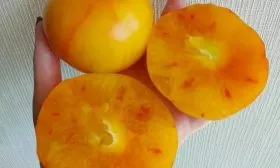 Полное созревание — это эффектная трансформация. Цвет меняется на нежно-розовый, часто с перламутровым или матовым отливом. Кожица тонкая, что напрямую влияет на потребительские качества, но при этом обладает достаточной плотностью, чтобы удерживать сочную и мясистую мякоть. Внутренняя структура плода отличная: мякоть сахаристая, маслянистая, практически без пустот и крупных семенных камер.