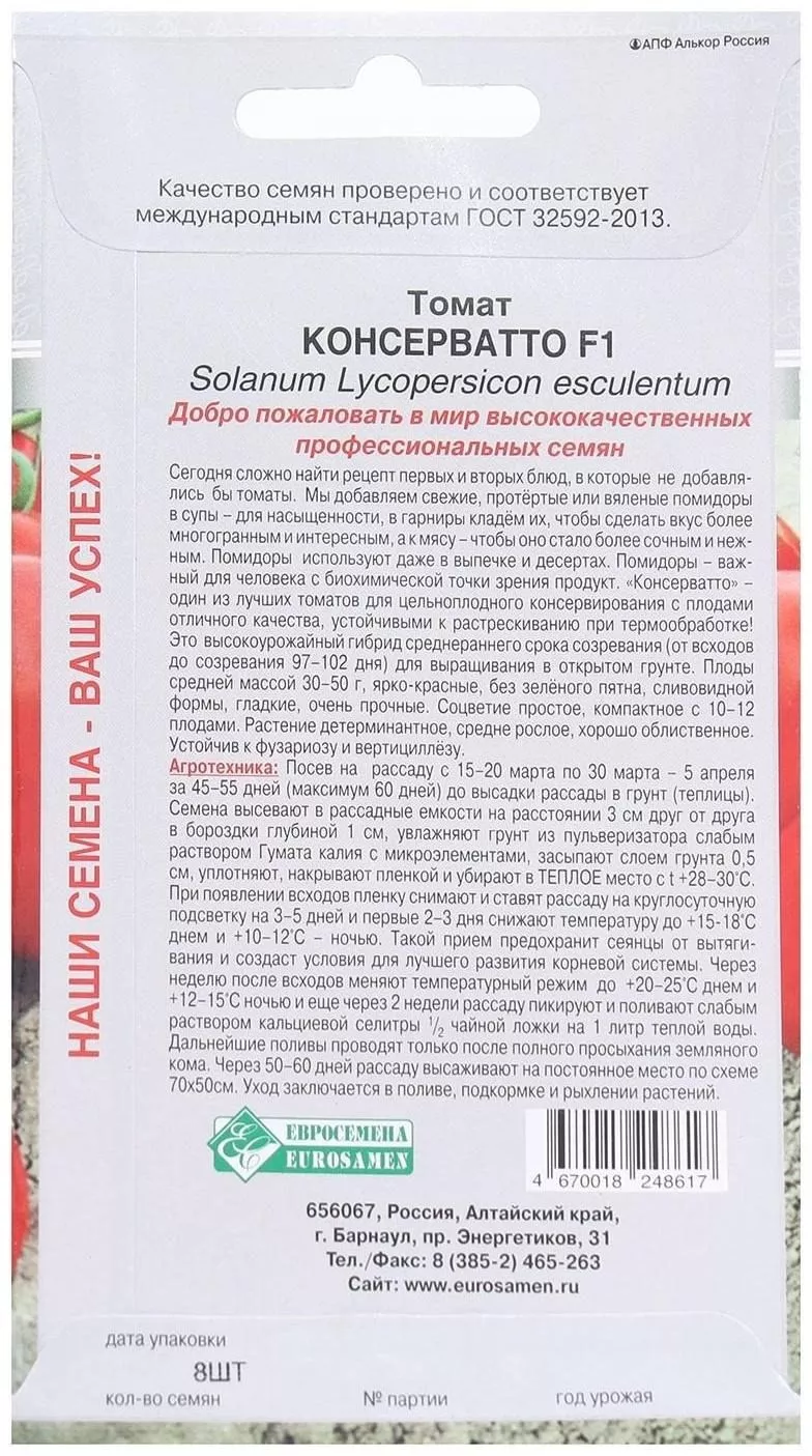 Данный гибрид является результатом целенаправленной селекции, где главным критерием успеха была не универсальность, а специализация. Его создатели ставили задачу вывести растение, плоды которого по своим физическим и технологическим свойствам идеально подходят для термической обработки и консервирования в целом виде. Название сорта «Консерватто» прямо указывает на эту ключевую область его наилучшего применения.