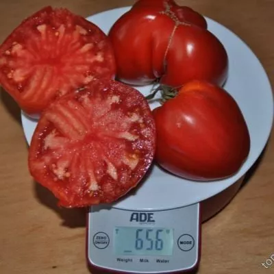 По типу мякоти сорт относится к категории биф-томатов (от английского «beef» — говядина). Это означает, что плоды отличаются исключительной мясистостью и высокой плотностью. На разрезе видно, что семенных камер очень мало, они небольшие и заполнены незначительным количеством желеобразной массы с семенами. Основной объем плода, который может достигать 200-300 граммов, занимает однородная, сахаристая на изломе мякоть.