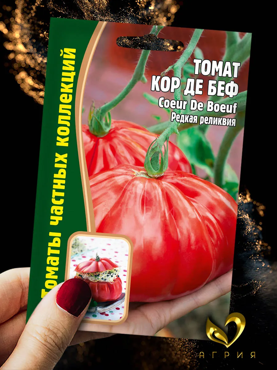 Кор де Беф — это классический сорт, чье название с французского переводится как «бычье сердце». Он полностью оправдывает это сравнение благодаря крупным, мясистым плодам характерной сердцевидной формы. Его популярность среди огородников держится десятилетиями, что говорит о стабильности сортовых признаков и проверенных характеристиках.