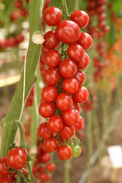 Декоративность и высокая урожайность сорта раскрываются в период плодоношения. Плоды завязываются в длинных, разветвленных кистях (гроздях). На одной такой кисти может одновременно формироваться и созревать от 15 до 20 плодов, что создает эффект гирлянды.