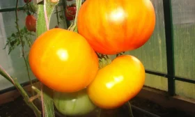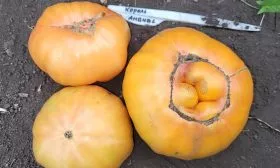 Плоды многокамерные, с небольшим количеством семян. Мякоть сахаристая, плотная, с высоким содержанием сухих веществ, что характерно для многих крупноплодных сортов. Такая структура обеспечивает насыщенный вкус и делает плоды менее водянистыми.