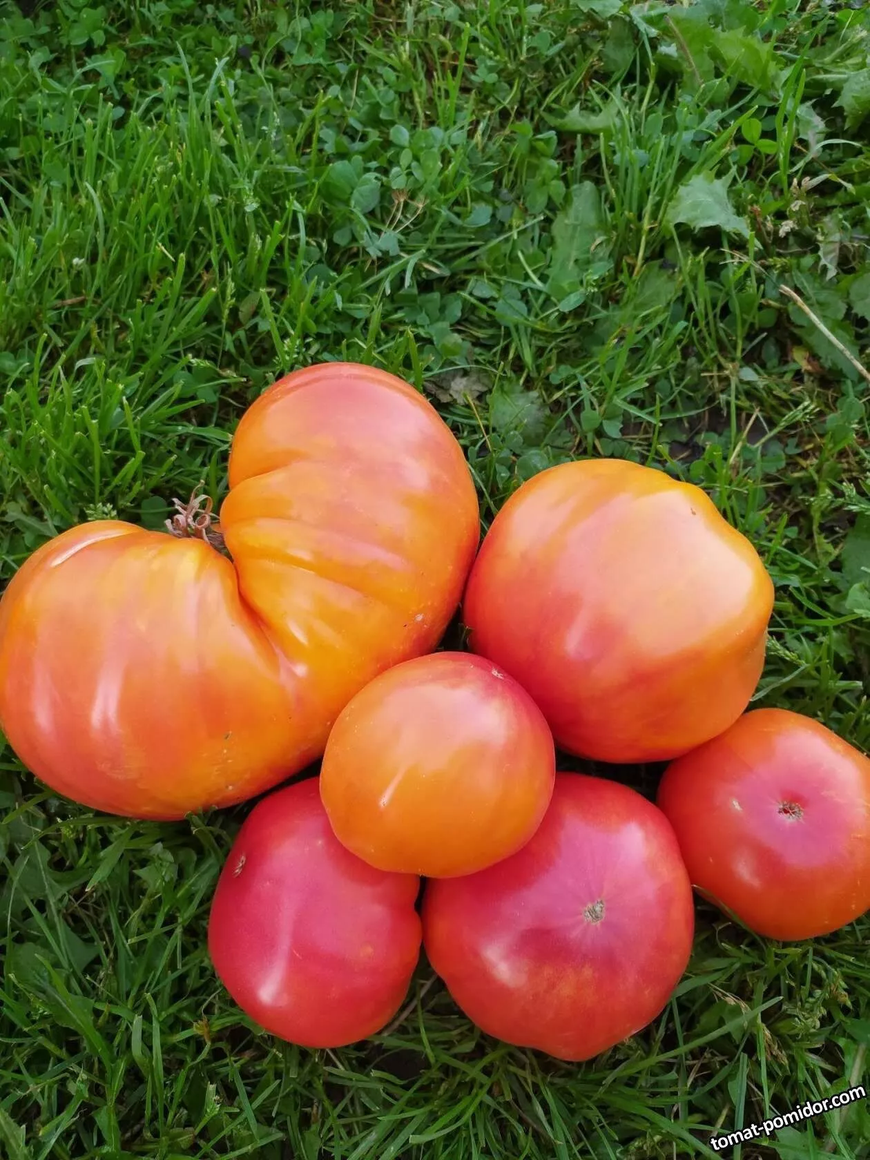 Плоды многокамерные, с небольшим количеством семян. Мякоть сахаристая, плотная, с высоким содержанием сухих веществ, что характерно для многих крупноплодных сортов. Такая структура обеспечивает насыщенный вкус и делает плоды менее водянистыми.