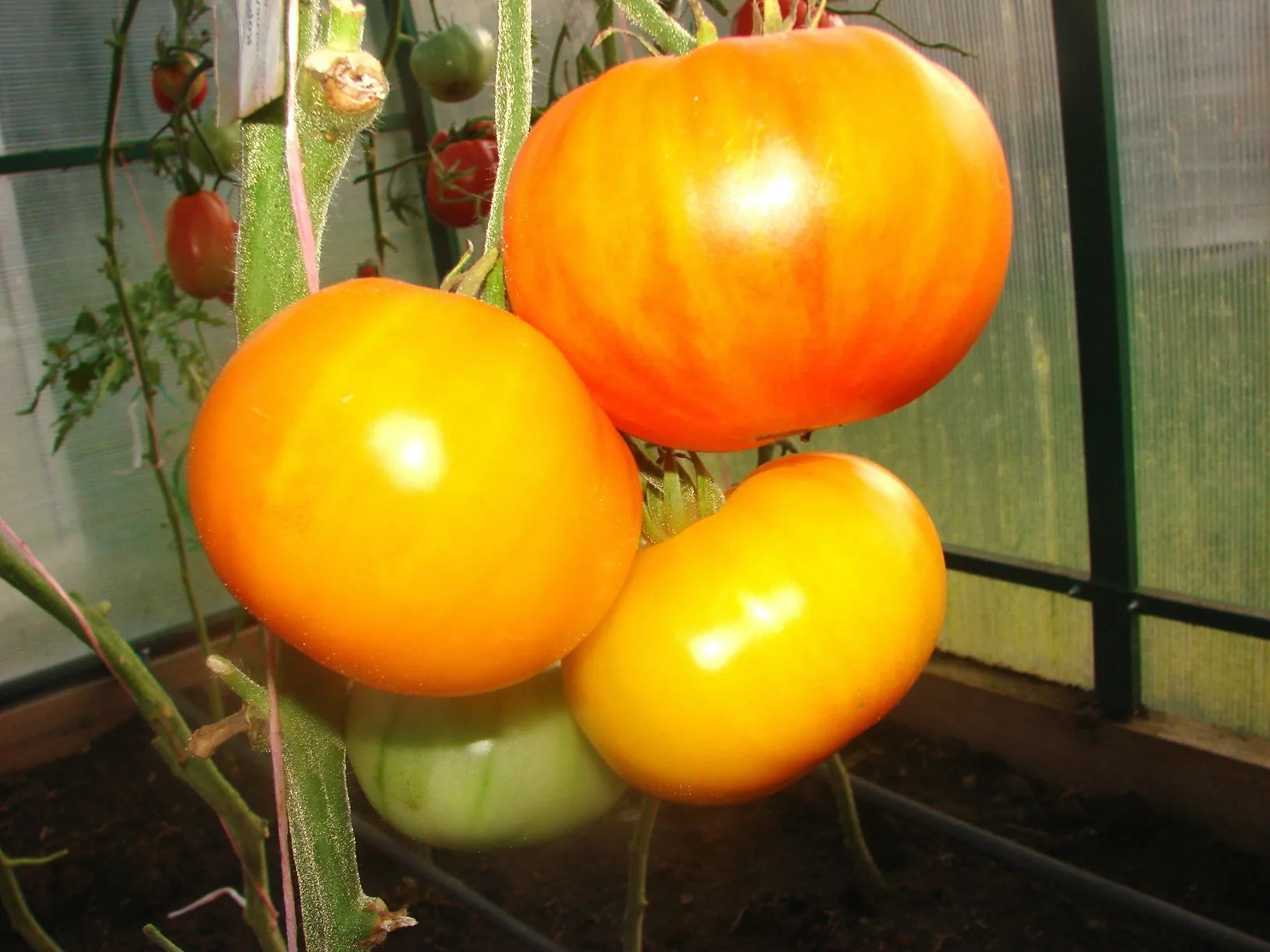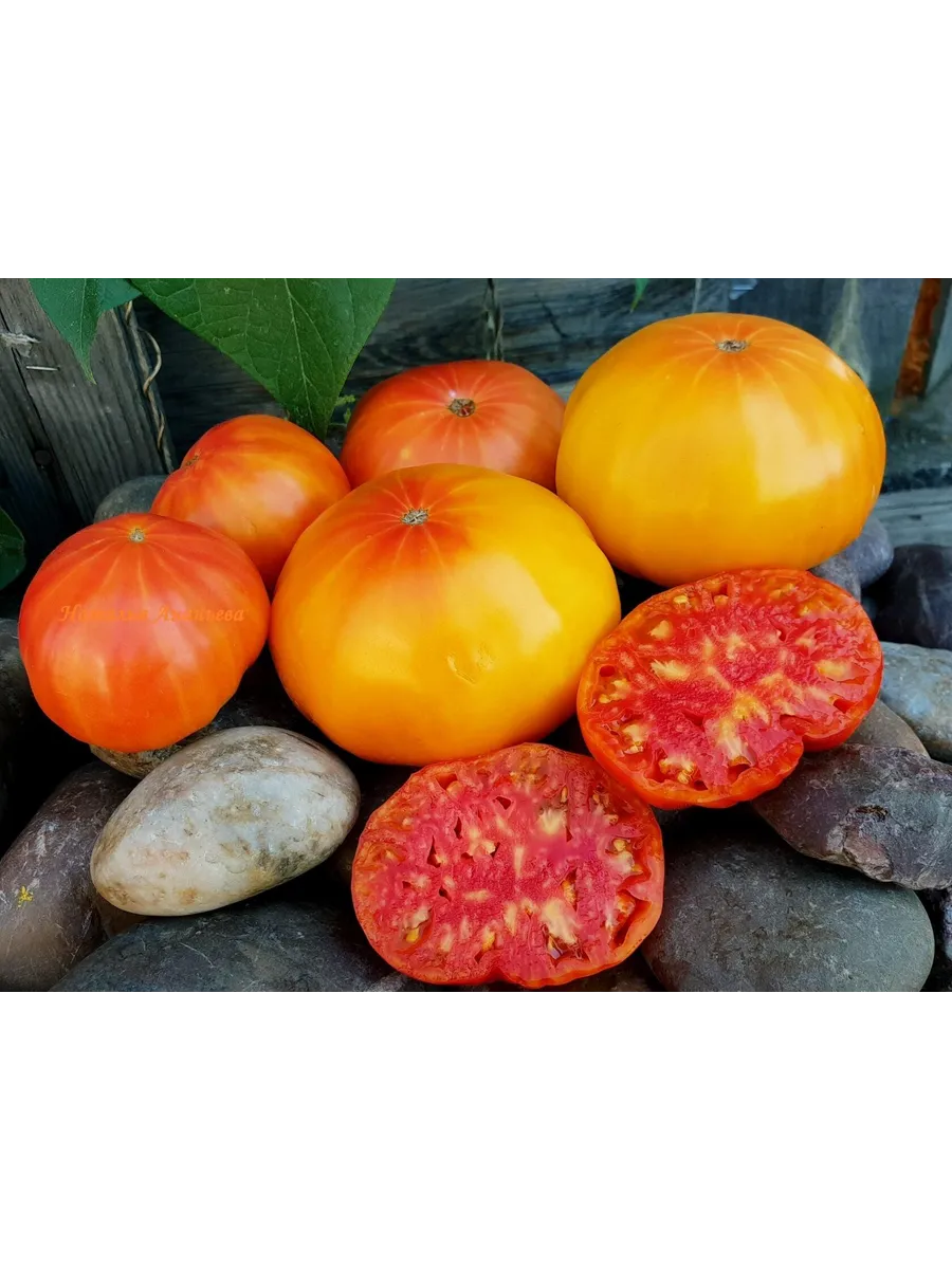 Главный ориентир для сбора — полная биологическая спелость. Только на кусте под солнцем томаты набирают свой фирменный сладкий вкус и уникальный окрас: насыщенный оранжевый фон с малиновыми разводами у плодоножки. Плод считается готовым, когда цвет становится равномерным по всей поверхности, а мякоть при легком нажатии упруго поддается.