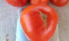 | Форма плода | Округло-плоская | Классическая форма для крупноплодных биф-томатов. Плоды часто имеют выраженную ребристость у плодоножки. |