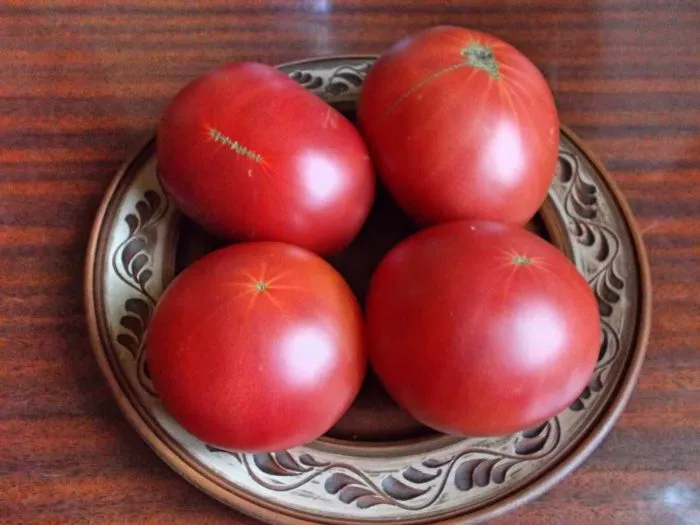 Главная отличительная черта сорта – его плоды. Они формируются в кистях и имеют характерную плоскоокруглую форму, часто с заметной ребристостью в области плодоножки. Средняя масса одного томата составляет около 225 граммов, но при нормировании завязей или на первых кистях могут вызревать экземпляры и крупнее.