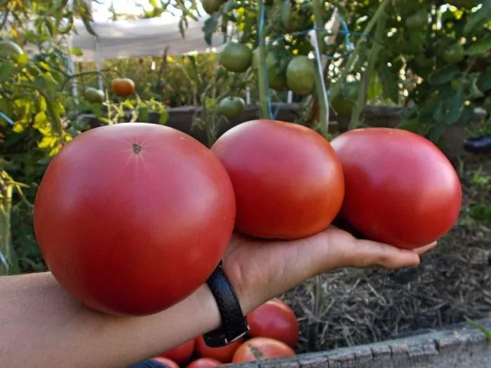 Сбор плодов этого сорта действительно приносит удовольствие благодаря дружному созреванию и крупному размеру томатов. Уборку начинают с нижних кистей, которые поспевают первыми. Из-за тонкой, нежной кожицы и сочной, мясистой мякоти, характерных для розовоплодных сортов, полностью спелые томаты плохо переносят длительную транспортировку и хранение.