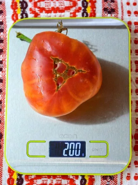 Сорт демонстрирует типичную для многих крупноплодных томатов особенность: размер плодов напрямую зависит от порядка кисти. Первые, нижние завязи часто становятся рекордсменами, их масса может превышать заявленные 250 граммов. На последующих ярусах плоды выравниваются, соответствуя среднему диапазону в 150-250 граммов. Такой градиент по весу важно учитывать при планировании урожая и подвязке, так как нижние кисти несут максимальную нагрузку.