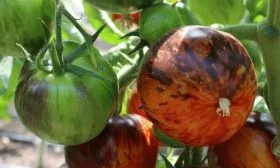 Сбор урожая проводят в стадии полной биологической зрелости, когда плоды набирают свой фирменный цвет и сладость. Именно на солнце окончательно проявляется уникальная окраска — оранжево-красный фон с пестрыми вкраплениями антоциана и темно-фиолетовыми плечиками. Снимать томаты бурыми для дозаривания в помещении можно, но это часто приводит к менее интенсивной и неравномерной окраске, а также к недобору сахаров, что сказывается на вкусе.