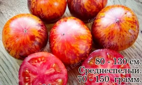 Форма плодов округлая, слегка приплюснутая сверху и снизу. Масса варьируется в очень широком диапазоне — от 60 до 180 граммов. Крупные плоды, как правило, формируются в нижних кистях, тогда как в верхних они будут мельче, особенно если на кусте оставлено много завязей.