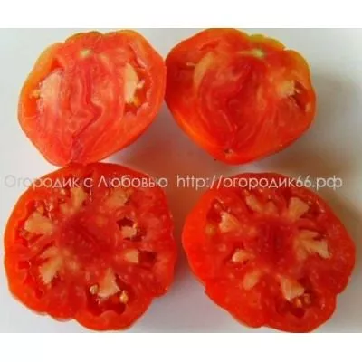 На срезе хорошо видны многокамерные семенные гнезда. Мякоть отличается высокой плотностью и мясистостью, при этом оставаясь сочной. Количество семян в плодах невелико, что является общей чертой многих современных гибридов. Такая структура обеспечивает не только отличные вкусовые качества, но и хорошую транспортабельность, а также универсальность в кулинарном использовании.