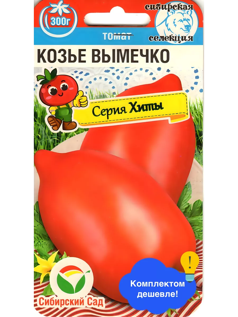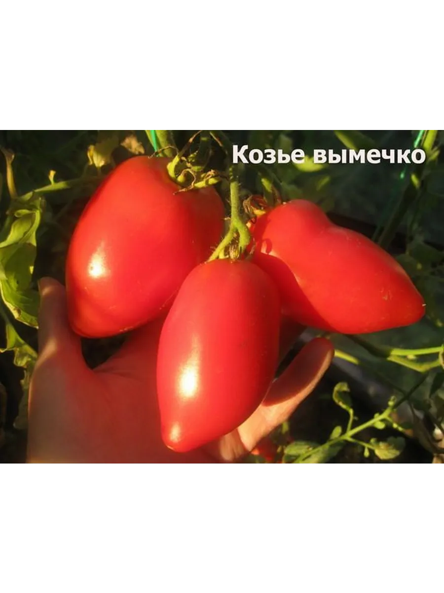 Название «Козье вымечко» – это точная образная характеристика. Плоды имеют удлиненно-перцевидную форму с ярко выраженным заостренным кончиком («носиком»), что визуально напоминает козье вымя. Такая нестандартная форма, наряду с насыщенным томатным вкусом и крупным размером (200-300 г), и составляет основную ценность этого сорта для огородников, ищущих интересные и проверенные временем варианты для своего участка.