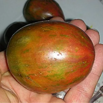 Внешний вид плодов — это визитная карточка данного сорта. Их уникальная окраска сразу выделяет его среди других томатов на грядке или в теплице. В стадии полной зрелости плоды приобретают эффектную полосатую расцветку, где сочетаются зеленые, желтые и красные тона. Этот окрас не является равномерным, а представляет собой живописные разводы и полосы, что делает каждый томат индивидуальным.