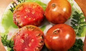 - В свежем виде. Темные томаты богаты антоцианами и отличаются насыщенным вкусом. Они прекрасно смотрятся в нарезке, салатах и бутербродах. Плоды такого размера часто используются для фарширования.