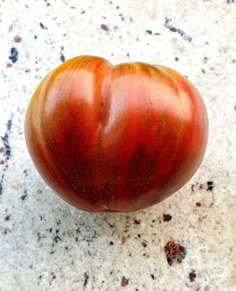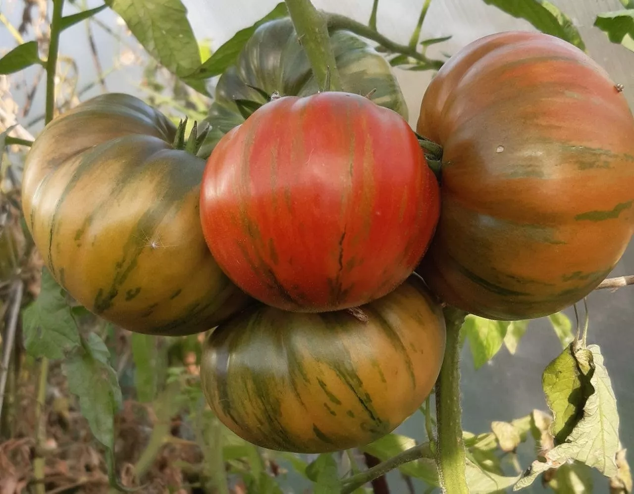 | Цвет зрелого плода | Бордово-коричневый с зелеными полосами и штрихами | Сложная, «шоколадная» окраска является сортовой особенностью. Полная биологическая зрелость наступает, когда плод становится мягким на ощупь, а зеленые штрихи могут оставаться. |