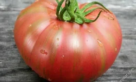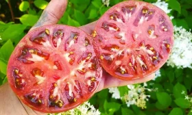 Его плоско-округлые плоды массой 180-250 граммов обладают сбалансированным вкусом с преобладанием сахаров. Такое сочетание делает мякоть не только вкусной в свежем виде, но и идеально подходящей для переработки. Высокое содержание сахаров и сухих веществ обеспечивает густую консистенцию и насыщенный вкус готовых продуктов — кетчупа, пасты и сока.