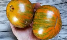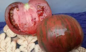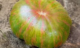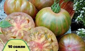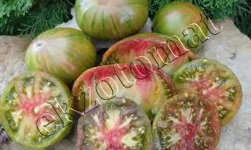 Вкусовой профиль этого сорта формируется его мясистой, сахаристой мякотью с высоким содержанием сухих веществ. Классический «томатный» вкус с выраженной сладостью и легкой, приятной кислинкой делает плоды отличным выбором для свежего потребления. Их необычная окраска — розовые полосы на зеленом фоне — добавляет эстетики летним блюдам.