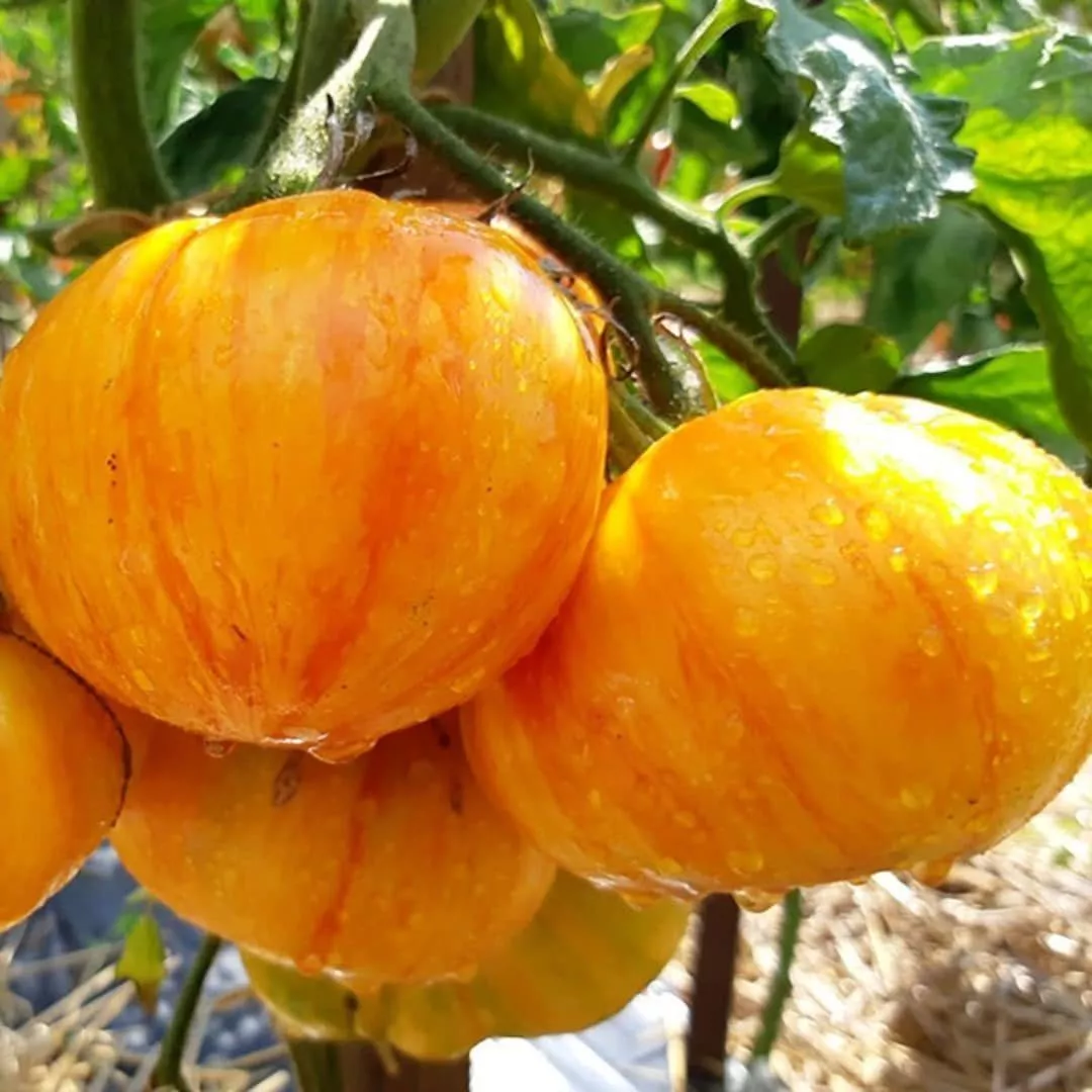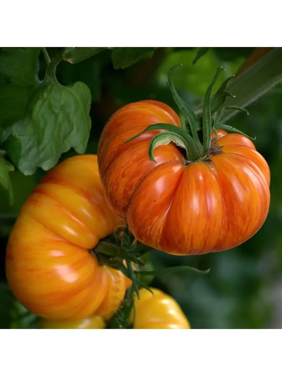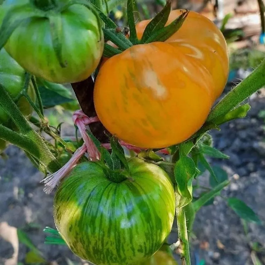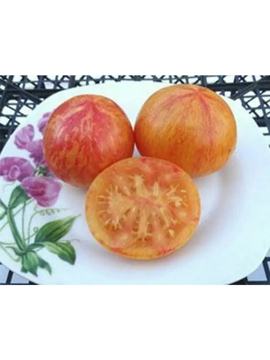 По мере созревания основной фон наливается насыщенным оранжево-красным цветом, по которому проступают неравномерные розовые штрихи, полосы и мраморные разводы. Интенсивность этого рисунка может варьироваться от плода к плоду даже в пределах одной кисти, что делает каждый помидор уникальным.