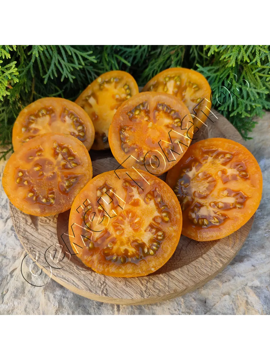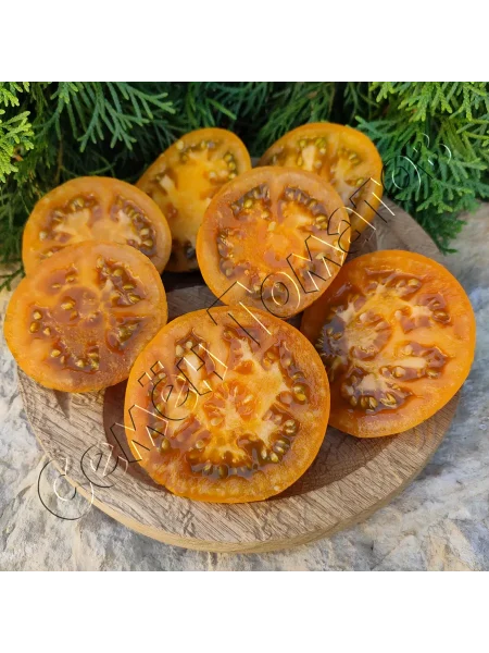 Мякоть у сорта действительно мясистая и плотная, с высоким содержанием сухих веществ. При разрезе она не течет, а на срезе видна характерная сахаристость. Благодаря такой структуре внутри плода практически не образуется пустот и семенных камер с большим количеством свободной жидкости.