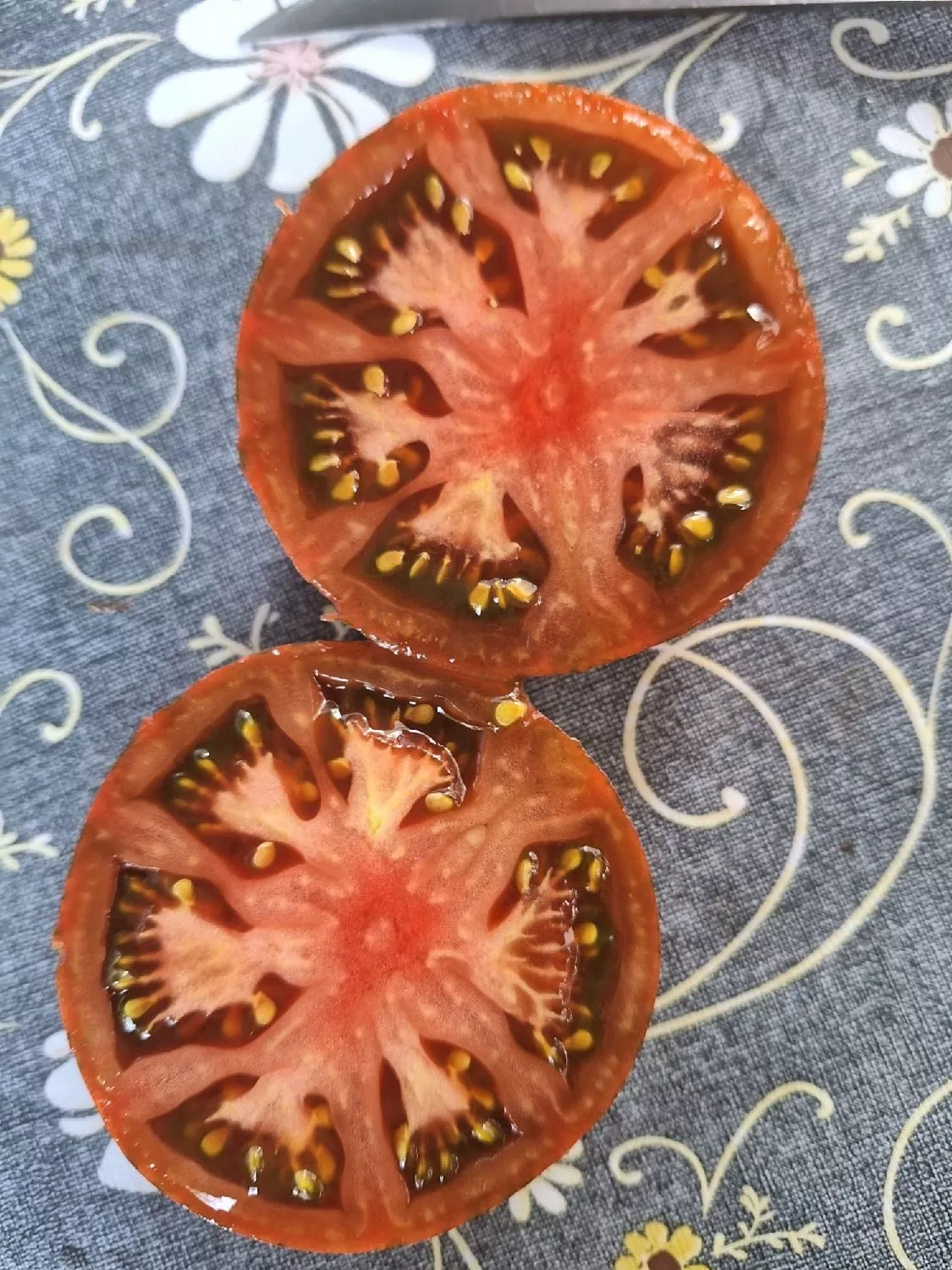 Кожица у плодов тонкая, но при этом достаточно плотная, чтобы предохранять их от растрескивания при соблюдении режима полива. Мякоть многокамерная, сочная, с высоким содержанием сухих веществ, что и формирует его характерный пряно-сладкий вкус без водянистости.