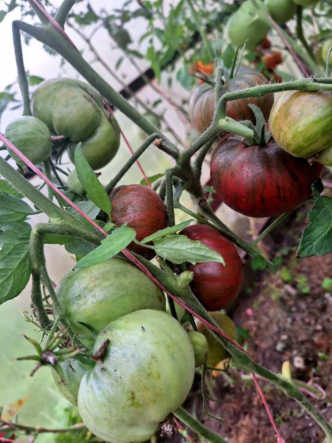 Подвязывание — обязательная процедура. Стебель нужно фиксировать к шпалере или прочному колу по мере роста. Особое внимание уделите подвязке тяжелых кистей с плодами массой до 350 г, так как под их весом ветви легко обламываются. Используйте широкие ленты или мягкий шпагат, чтобы не пережимать стебель.