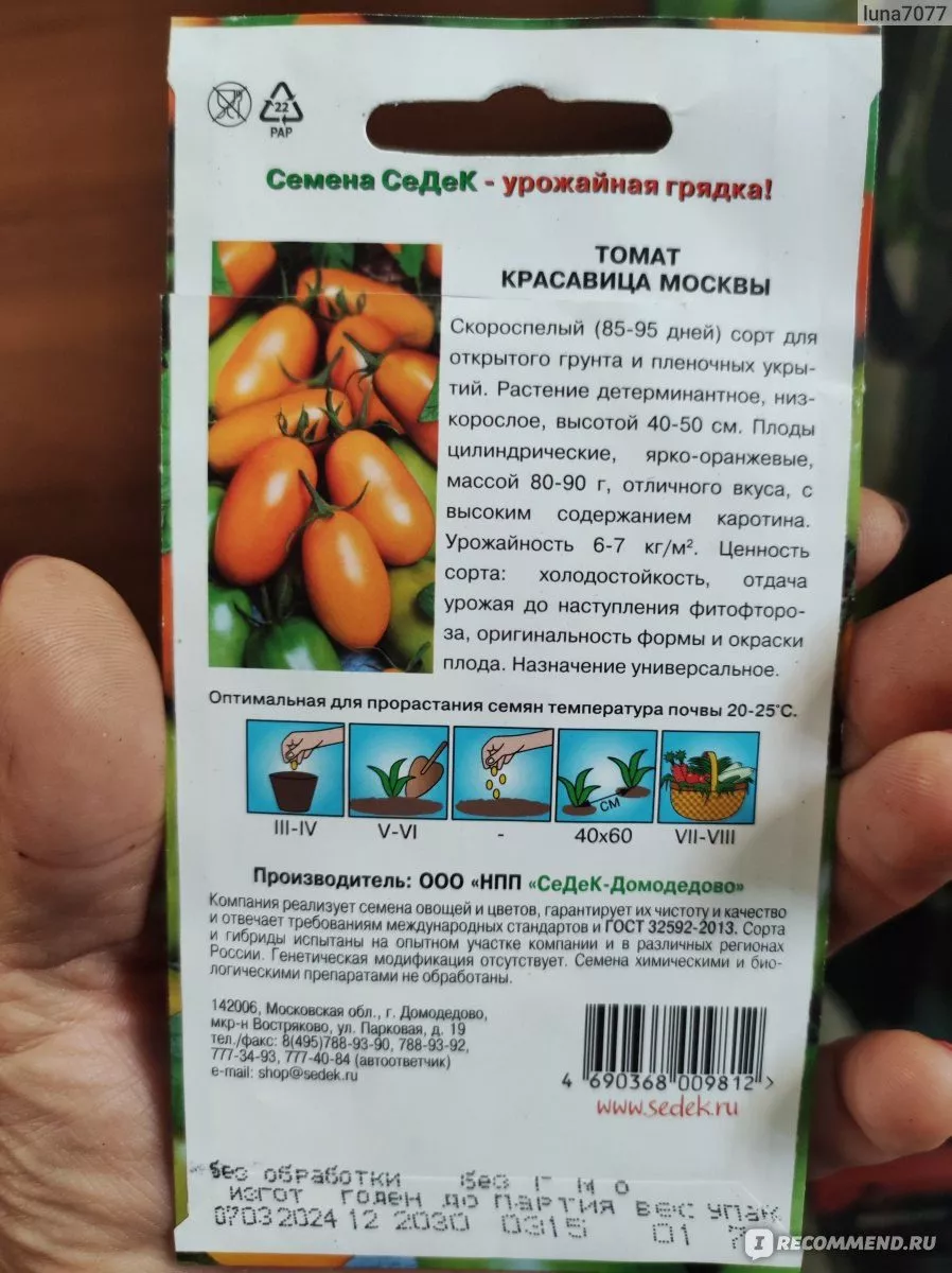 Красавица Москвы является сортом, а не гибридом. Это означает, что с него можно собирать семена, которые полностью повторят родительские признаки в следующем сезоне. Для этого выбирают самый типичный, здоровый и крупный плод с первой или второй кисти главного стебля.