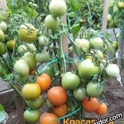 - Так как куст низкорослый, высотой 40-50 см, достаточно одной надежной опоры или невысокого колышка для поддержания кистей, налитых плодами. Подвязка предотвратит контакт плодов с землей.
