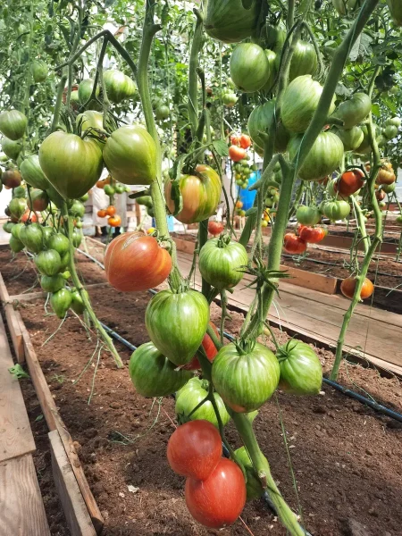 Плоды, собранные для дозаривания, отлично доходят до кондиции в комнатных условиях (+20…+25°C), что позволяет регулировать поступление спелых томатов к столу.
