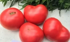 Полностью созревшие помидоры с характерным розовым окрасом имеют типичный для салатных сортов нежный покров. В таких условиях при комнатной температуре (+20…+25°C) они сохраняют товарный вид и вкус в течение 5–7 дней.